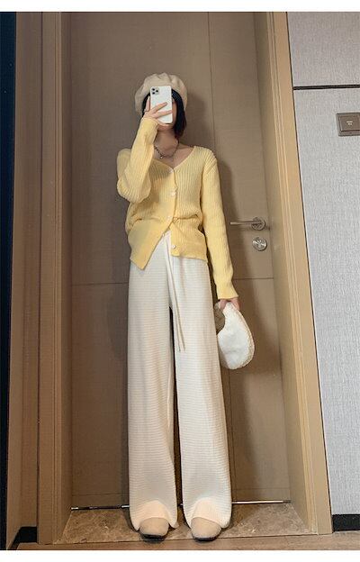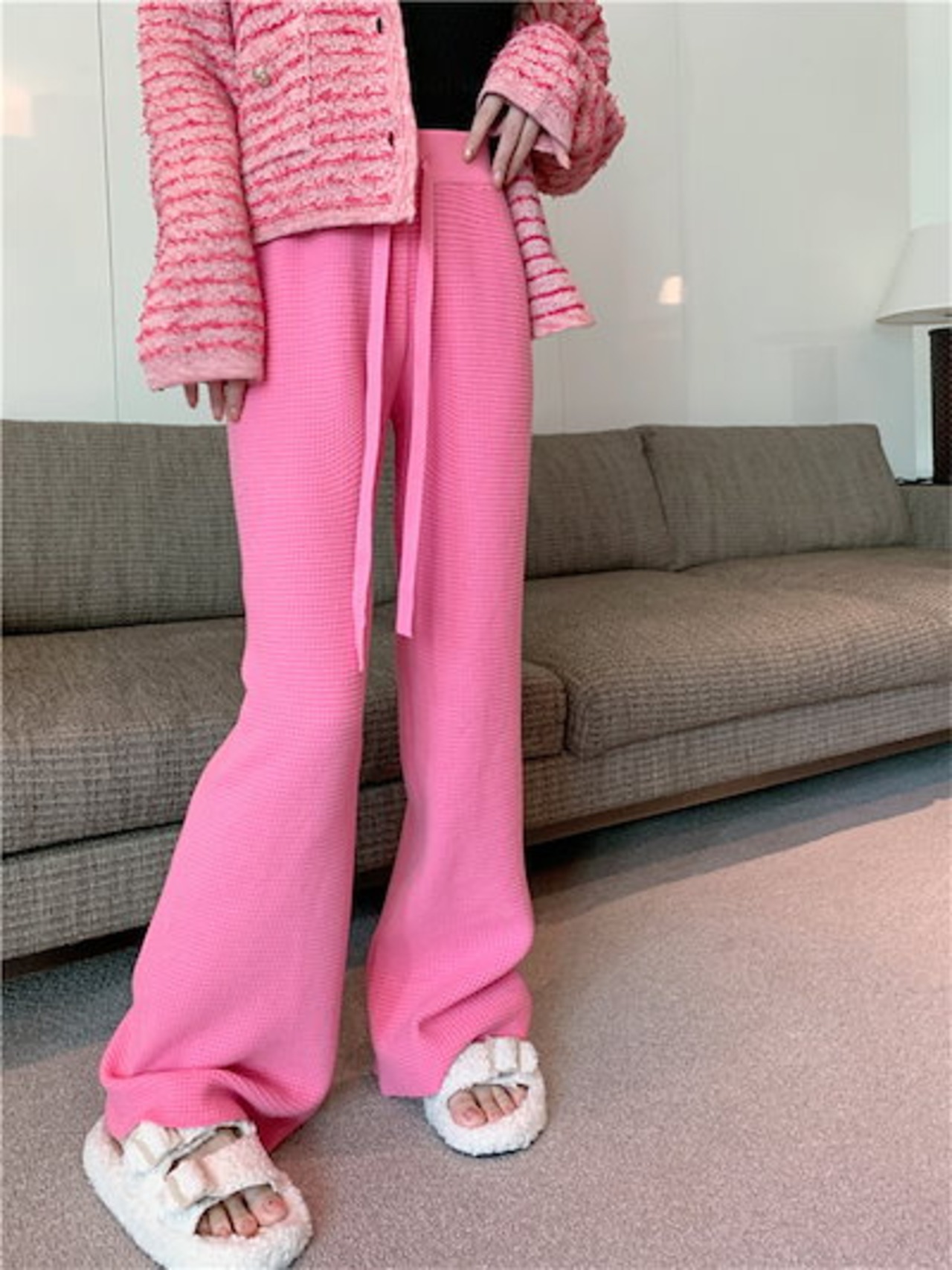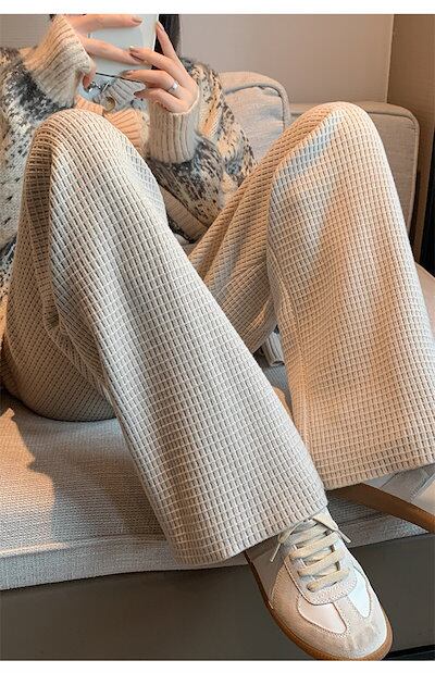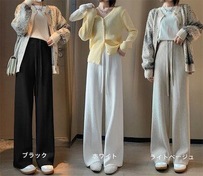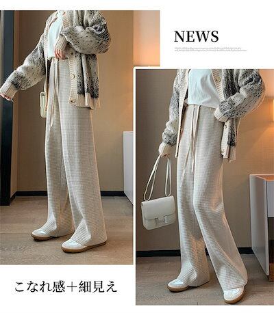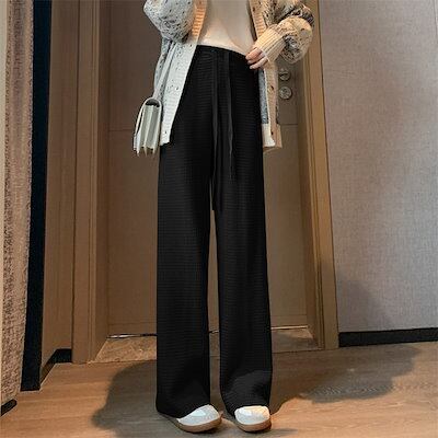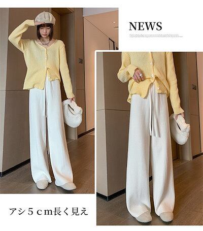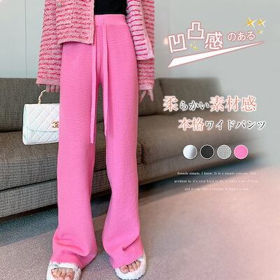 脚長効果 高見え ニットパンツ 長ズボン レディース レディース ワイドパンツ ロング 秋冬 縦ライン ワイド シンプル高級感 ゆったり ストレッチ パンツ シワにならない 無地 伸縮性 ボトムス ニ