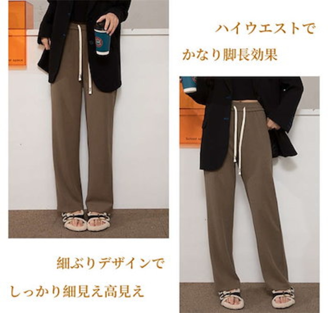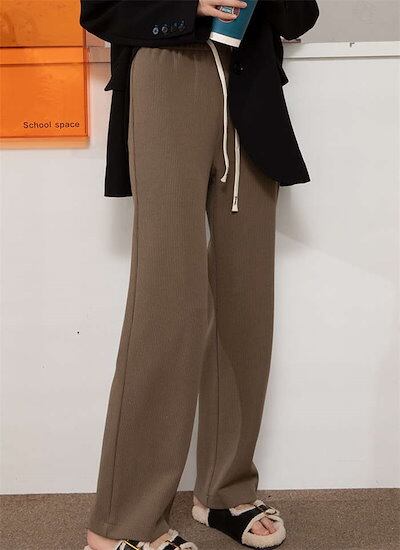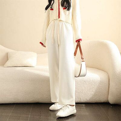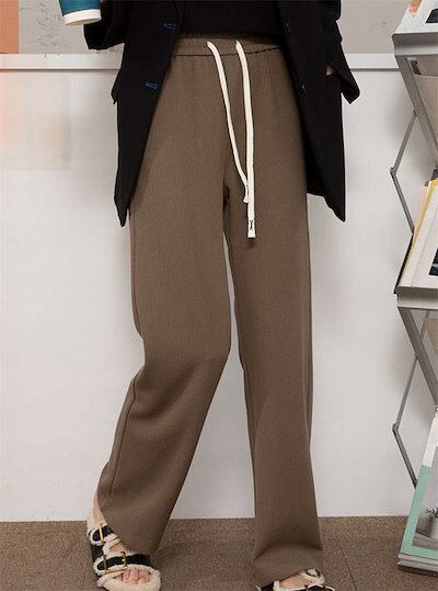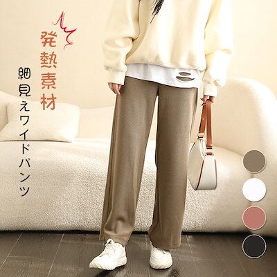 ボトムス 高見え シンプル レディース パンツ 発熱 あったか ワイド 伸縮性 秋冬 リブパンツ 細見え 長ズボン 無地 ゆったり 防寒 脚長効果 縦ライン ワイドパンツ ロング 暖かい ゆったり