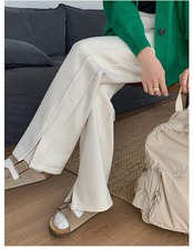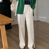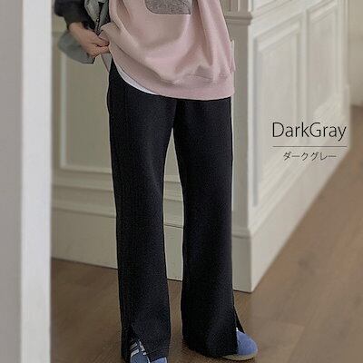 ワイドパンツ フレア 裾スリット ロング きれいめ ワイド レディース 大きいサイズ ズボン ストレートパンツ スリット ガウチョパンツ ゆったり ウエストゴム ボトムス パンツ 無地 イージーパン