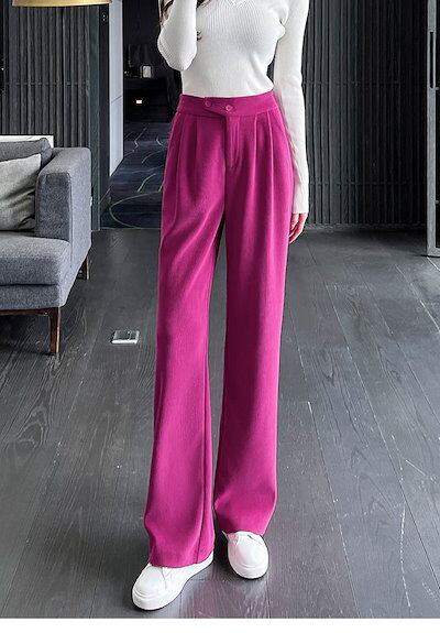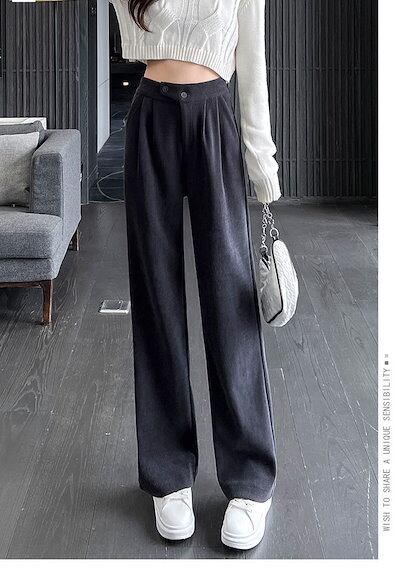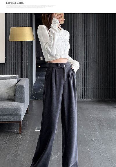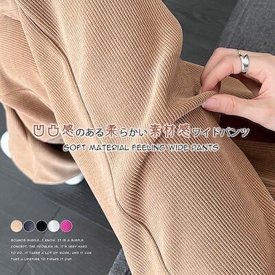 細見え 冬 秋 レディース 長ズボン 細リブデザイン 秋冬 プリーツパンツ 無地 パンツ シンプル 高見え ストレートパンツ ボトムス ワイドパンツ レディース ワイド 脚長効果 縦ライン きれいめ