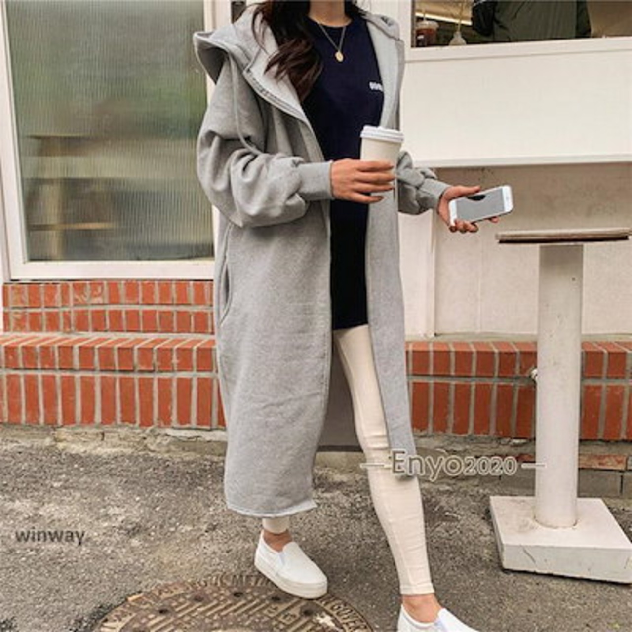 長袖ロングパーカー レディース スウェットパーカーコート アウター ゆるスウェット 裏起毛 フード付き 冬 ゆったり 体型カバー ロング丈 無地 オシャレ 大