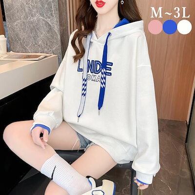 パーカー レディース トレーナー ロゴ スウエット プリント カジュアル ビッグシルエット 大きめ 長袖 切り替え 着痩せ 薄手 春秋 M L 2L 3L今日は30パーセント