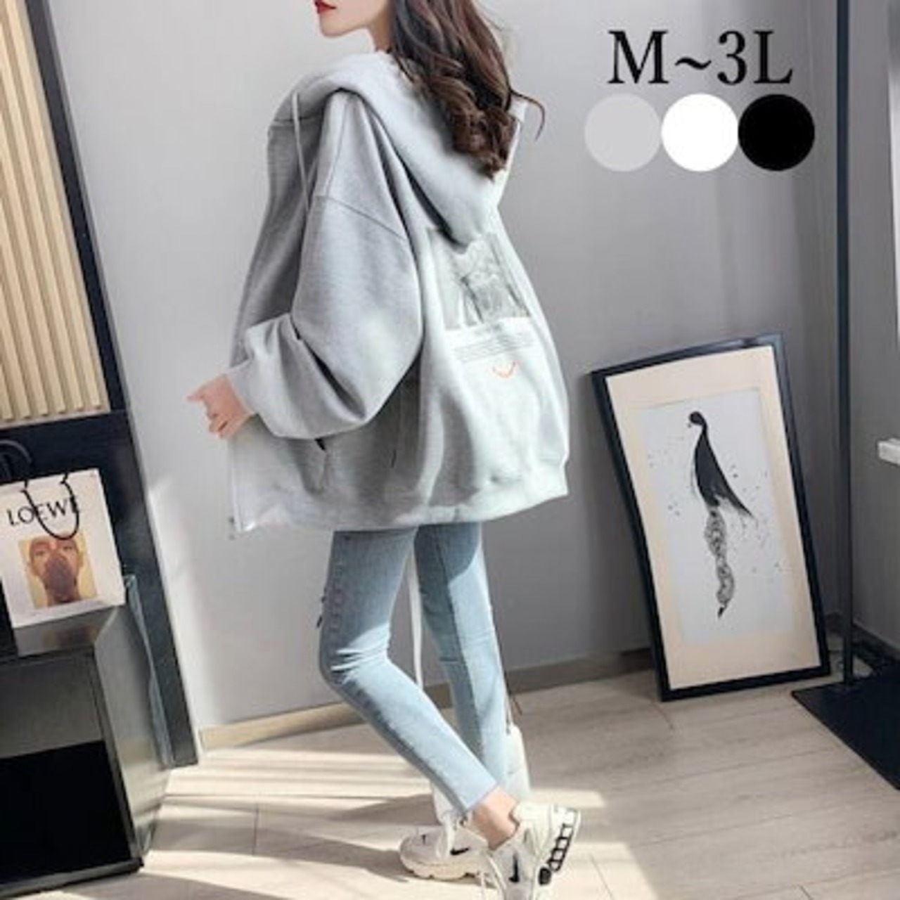 パーカー レディース フード ロゴ プリント スウェット コート アウター ロングパーカー トップス ポケットおしゃれ 長袖 ゆったり オシャレ ジップアップ 春 秋 M L 2L 3L