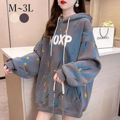 パーカー レディース 春 ロゴ トレーナー スウエット フード ロング ビッグシルエット 大きめ 長袖 ゆったり 春秋 冬 薄手 M L 2L 3L