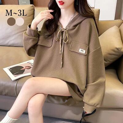 パーカー レディース 春 スウエット トレーナー オーバーサイズ ミディアム フード付き ロング ビッグシルエット 長袖 ゆったり 着痩せ 秋 冬 M L 2L 3L