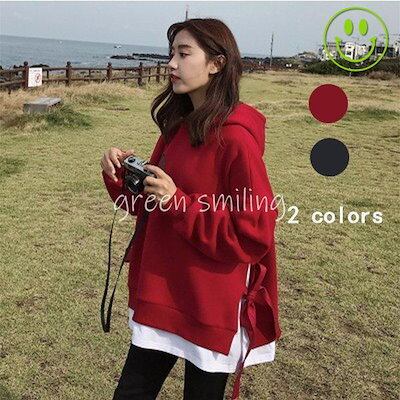 パーカー 秋冬 ゆったり 大きめ 秋 レディース トップス 体型カバー 裏起毛 フーディー おしゃれ 韓国 フード付き 赤30%までに制限