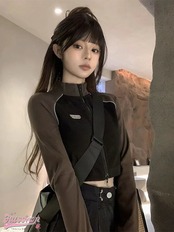ショート かわいい フル ブルゾン トップス アウターハイ ショート スタンド ショート お出かけ ストリート レディース アウター 長袖 セクシー トップス カジュアル ファッション夏秋 トラック安