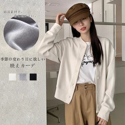 スウェット カーディガン レディース 秋冬 スウェットカーディガン 長袖 トップス 綿混 羽織り クルーネック 前開き ボタン止め 長袖カーディガン コットン トレーナー ノーカラーカーディガン ショ