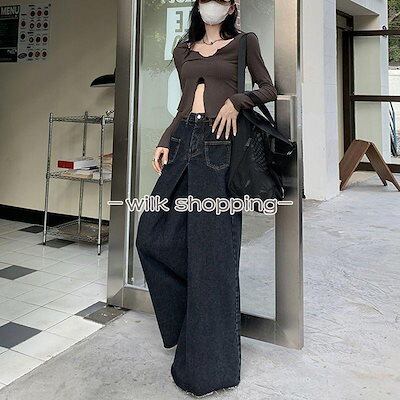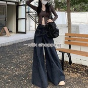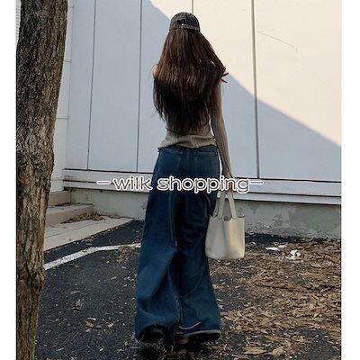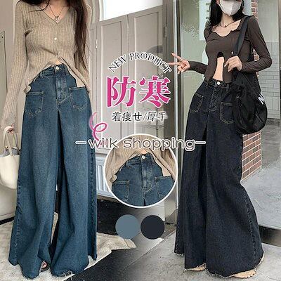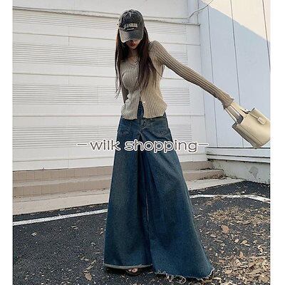 大きいサイズ レディース デニム ワイドパンツ サイドタック ウエストゴム バギーパンツ フレア パンツ ジーンズ ジーパン ボトムス
