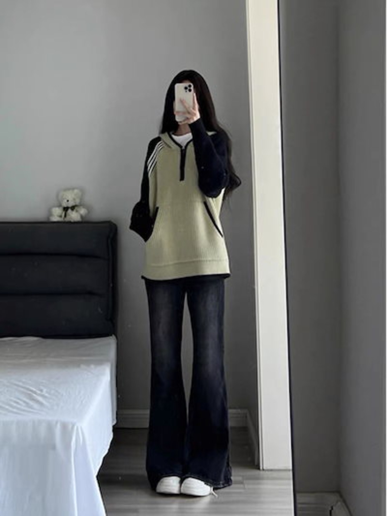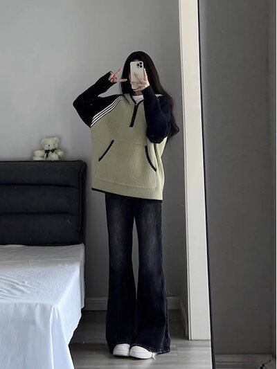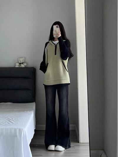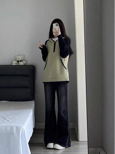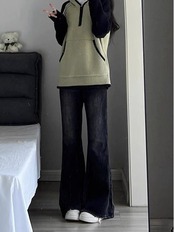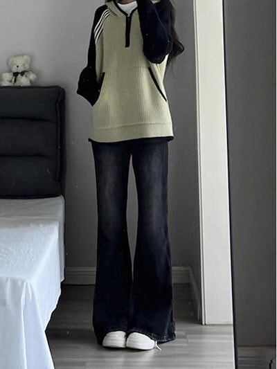 レトロアメリカンハイストリートマイクロフレアジーンズレディース2024新作秋冬ゆったり着やせハイウエストモップパンツ メガ割 テーパードパンツ