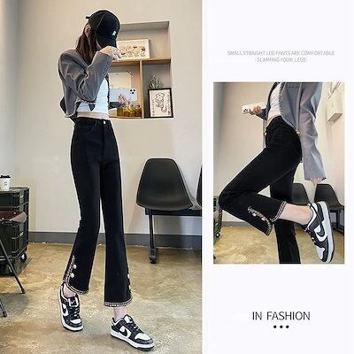 デニムボトムス ワイドパンツ 韓国ファッション ジーンズ レディース デニム ズボン 夏秋 ハイウエスト パンツ フレアパンツ美脚