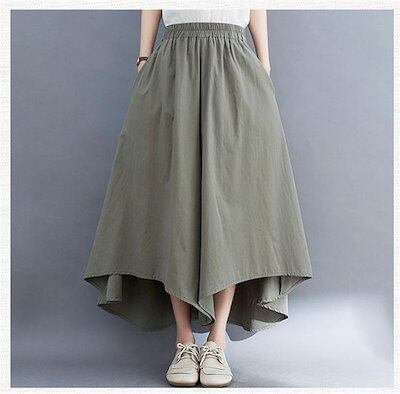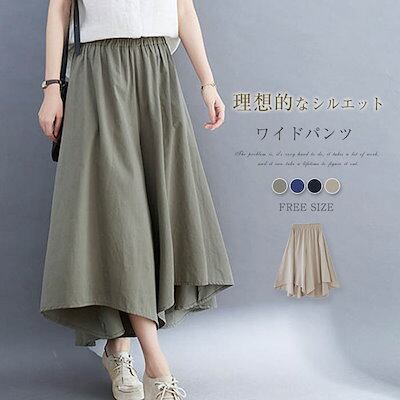 パンツ バギーパンツ カジュアル イージーパンツ 美脚 レディース ボトムス ワイドパンツ 体型カバー ゆったり 大きいサイズ 夏 フレアパンツ ズボン 森ガール ウエストゴム 綿麻風パンツ ガウチョ