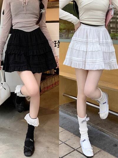 インナーパンツ付きスカート ティアードスカート スカート ミニスカート フレア スカート インナーパンツスカート バレエコア レディース 膝上丈 ミニ 美脚 カジュアル ウエストゴム 涼しい 春 夏