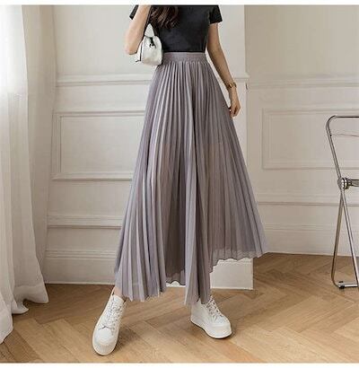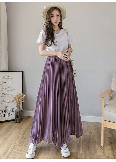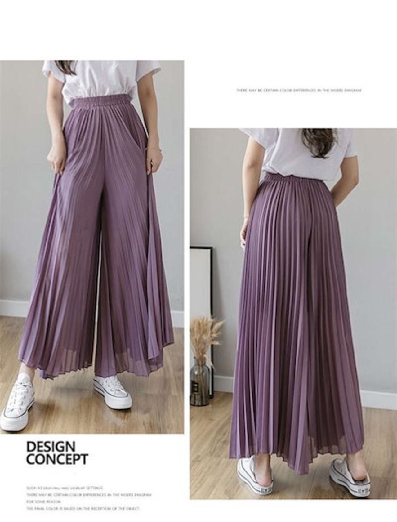 2024新作 プリーツパンツ ワイドパンツ リラックスパンツ フレアパンツ シフォン ガウチョ スカーチョ プリーツ パンツ レディース きれいめ 可愛い 無地 大きいサイズ 体型カバー おしゃれ