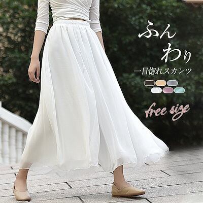 2024新作 ワイドパンツ スカンツ シフォン リラックスパンツ フレアパンツ ガウチョ スカーチョ パンツ レディース きれいめ 可愛い 大きいサイズ 体型カバー おしゃれ ゆったり カジュアル ナ