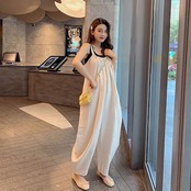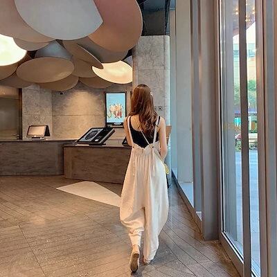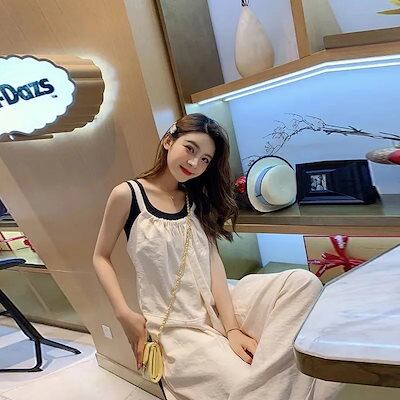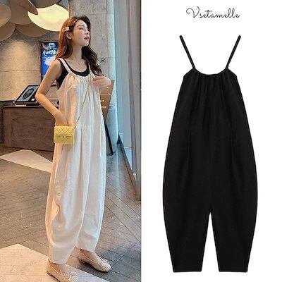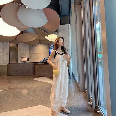 レディース リネン素材トップス 韓国ファッション フレアパン ワイドパンツ ロングパンツズボン オールインワン 夏 チェック ワイドパンツ 春 パンツ夏サロペット