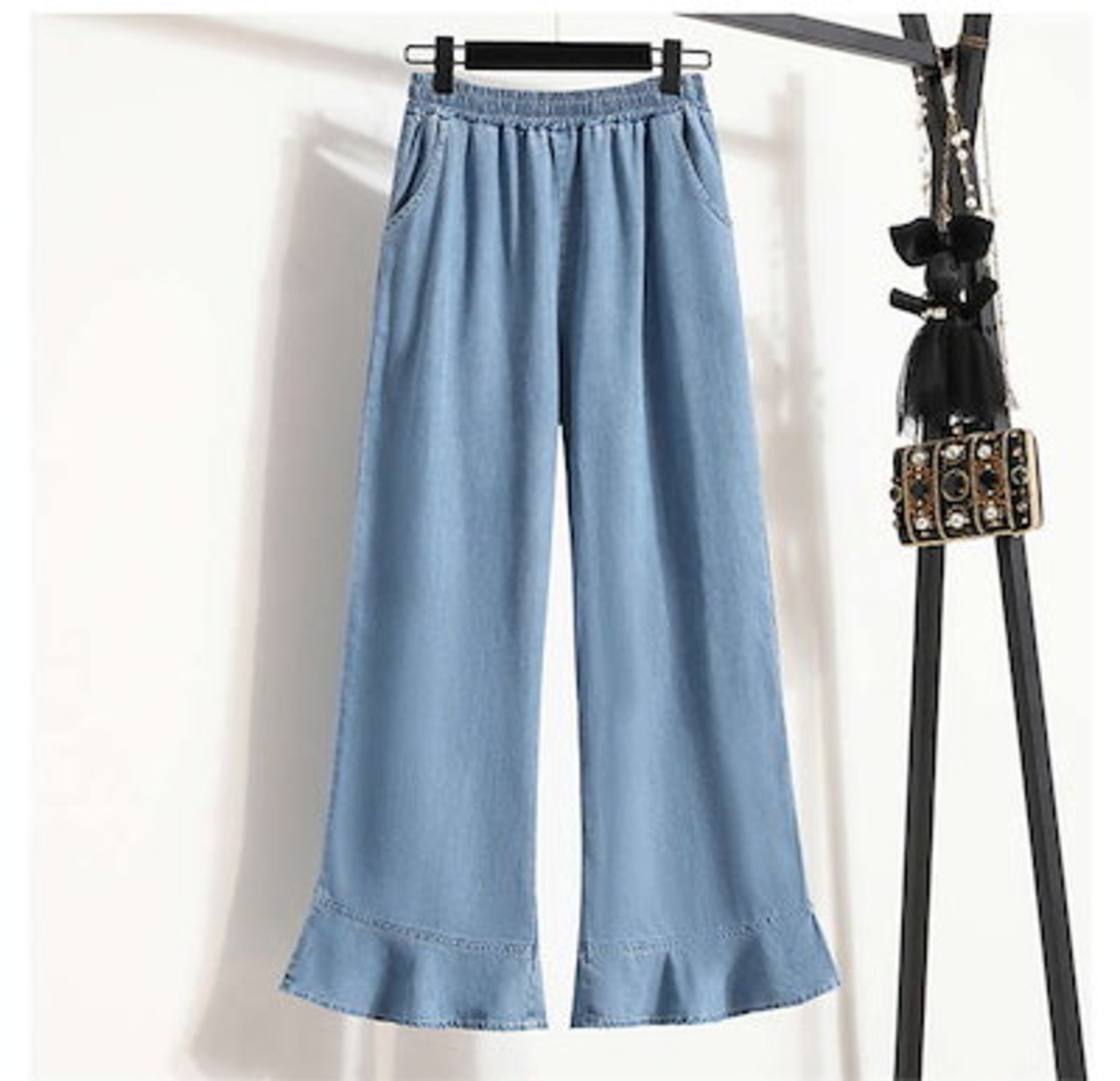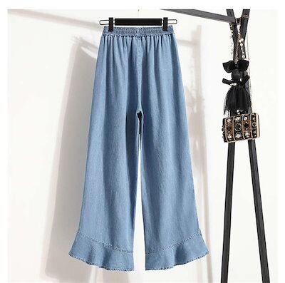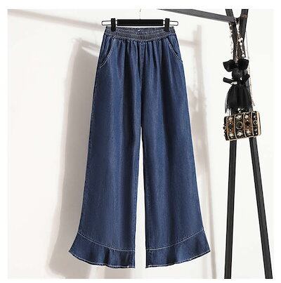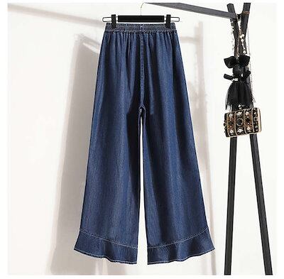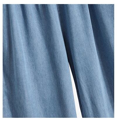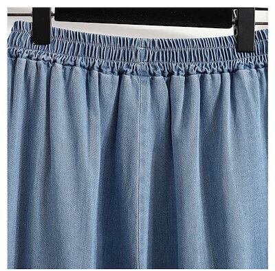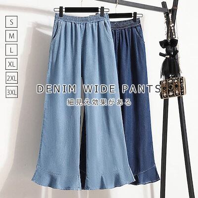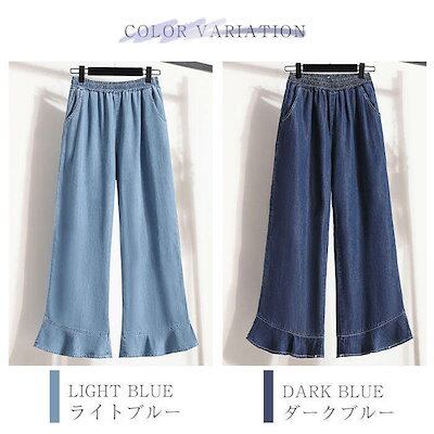 2024新作 ワイドパンツ デニム レディース パンツ 夏 接触冷感 ひんやり ボトムス 長ズボン ガウチョパンツ スカーチョ 紫外線対策 薄手 ウエストゴム 体型カバー 春 無地 着痩せ フレア裾