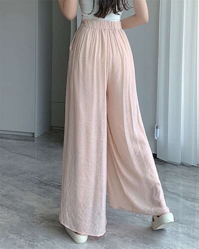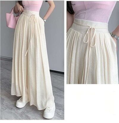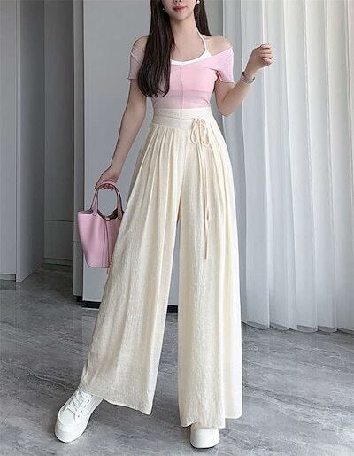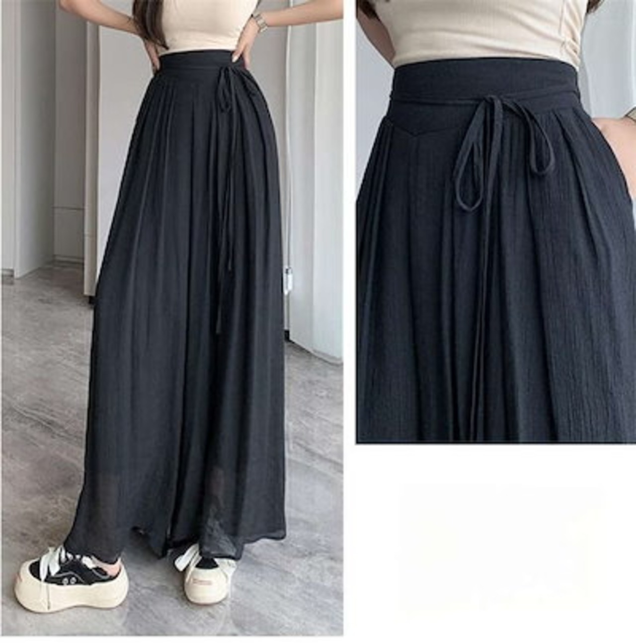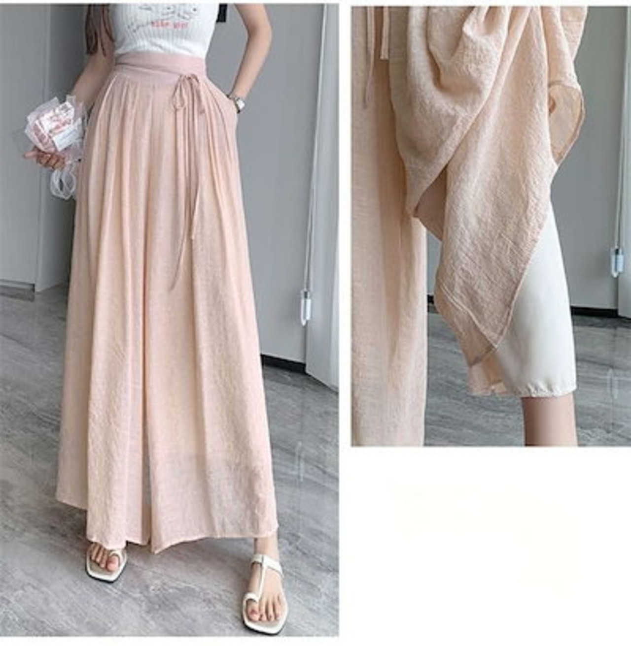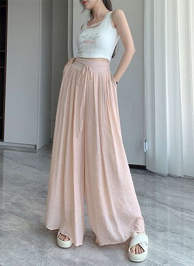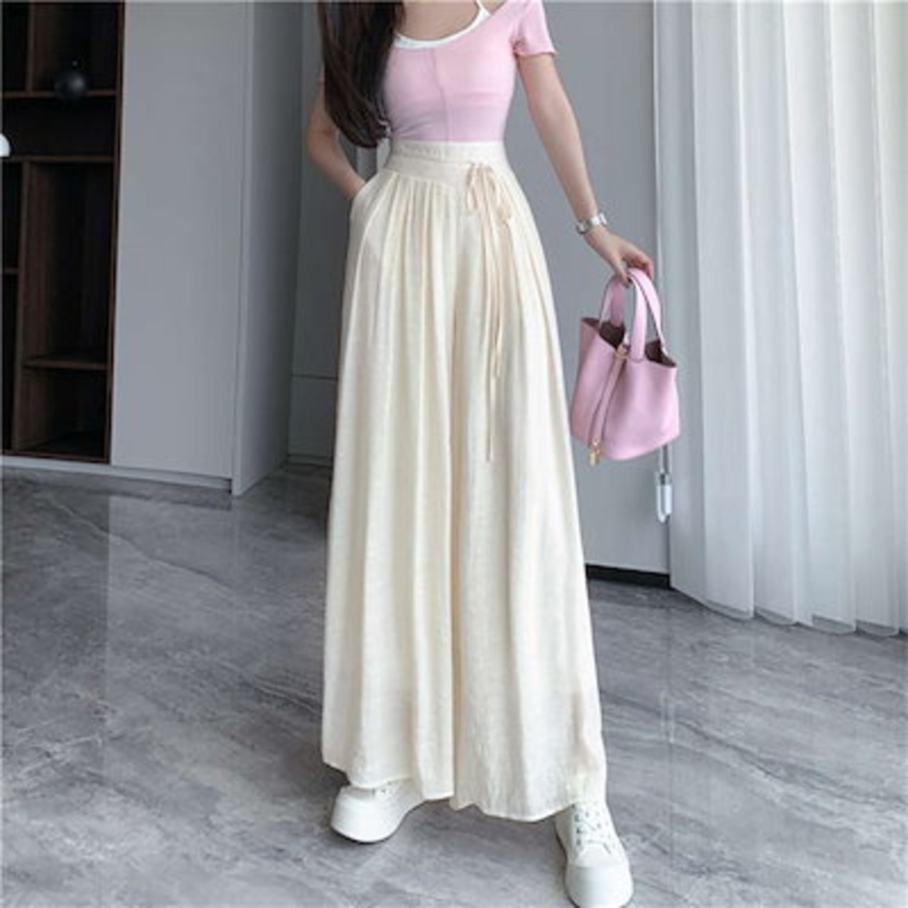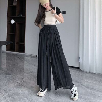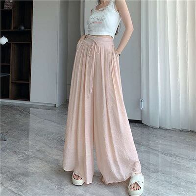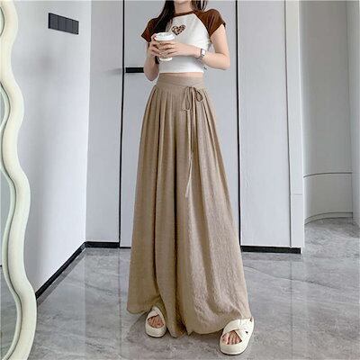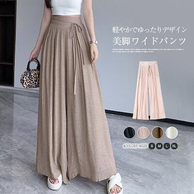 2024新作 ワイドパンツ レディース フレアパンツ パンツ ロング丈 春 夏 春夏 ウエストリボン ガウチョパンツ スカーチョ ロングパンツ 快適 無地 裏地付き シワ加工 ロング さらさら 大きい
