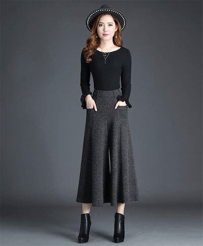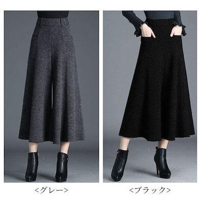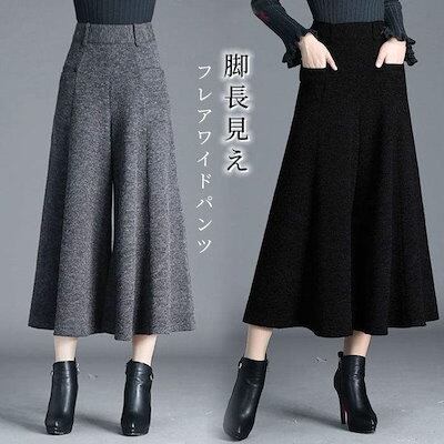 2024新作 パンツ ワイドパンツ レディース フレアパンツ パンツスカート 厚手 あったか 防寒 9分丈 ズボン ボトムス ガウチョ 春 秋 冬 無地 きれいめ カジュアル スカーチョ ハイウエスト