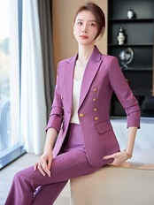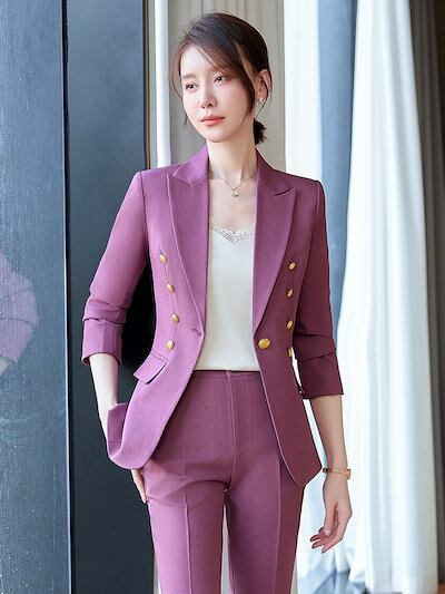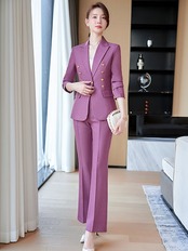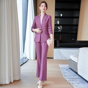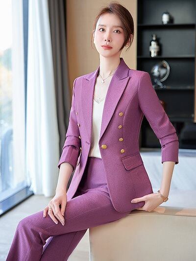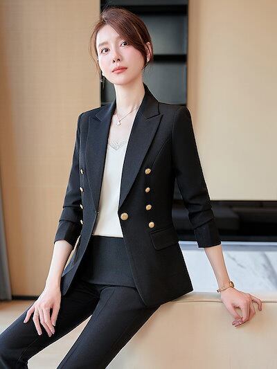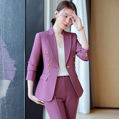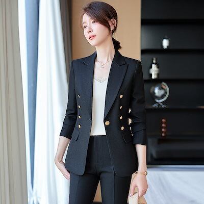 職業通勤スーツレディース2025春の新型ボタン気質ウエストスーツ英倫風二点セット フレアーパンツ