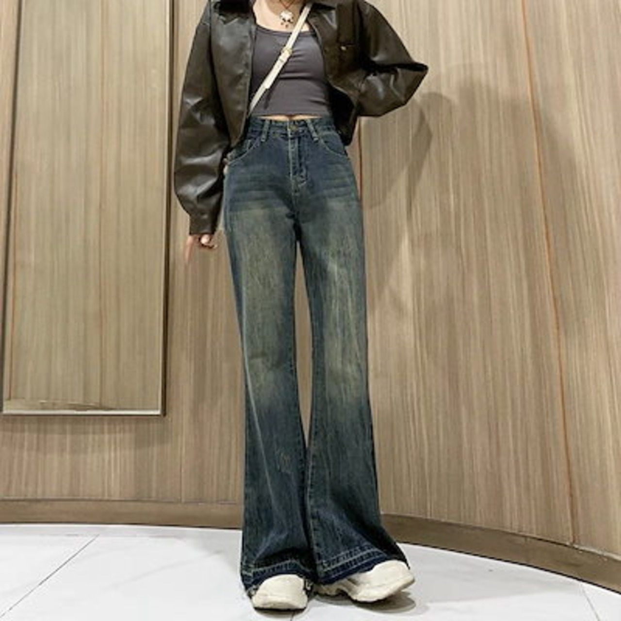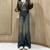 レトロ 切りっぱなし フレア ジーンズ 秋冬 レディース 新しい ハイウエストパンツ ゆったり 着痩せ 裏起毛 ワイドパンツ