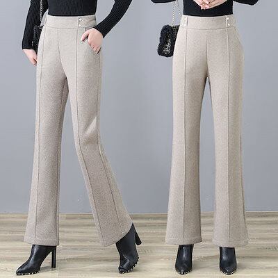 ラシャ フレアパンツ レディース ハイウエスト ドレープ感 ロングズボン ゆったり 着痩せ カジュアルパンツ