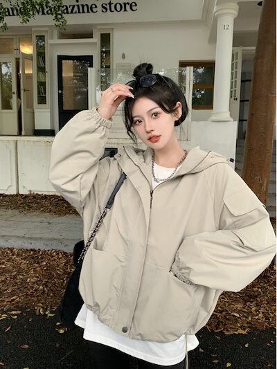 今年 秋冬 かわいい レディース フード付きアウターフーディーロゴブルゾン長袖シルエットトップスサイド冬カジュアルファッション系サイズお出かけフル丈トラック