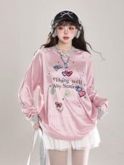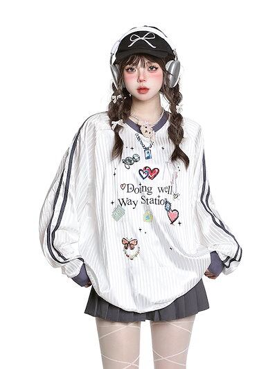 2024 秋冬 トレンド トップスバイカラー甘辛MIX長袖 かわいいTシャツレディース韓国風ロゴ衣装ルーズゆったりカジュアルおしゃれサイズスリーブシルエットファッション系サイドシャツフットスウエット春