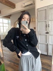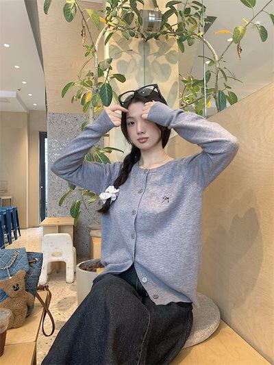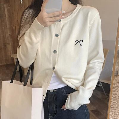 2024秋冬トップス カーディガン 羽織り 長袖 ボタン ラウンドネック 秋 黄色 緑 白 黒 青 おしゃれ かわいい 韓国ファッション レディース お出かけ