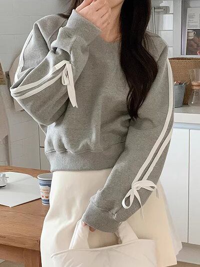 2024 秋冬 トップス 長袖 かわいいラウンドネック Tシャツ レディース 韓国風 ルーズ ゆったり 無地 カジュアル おしゃれサイズ袖 シルエットファッション系シャツ衣装お出かけ