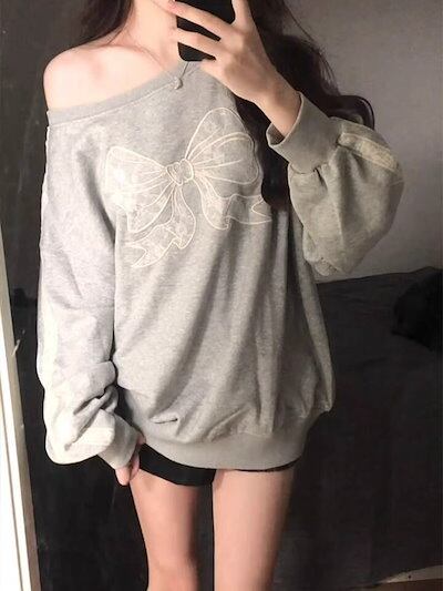 2024 秋冬 トップス 長袖 かわいいラウンドネック Tシャツ レディース 韓国風 ルーズ ゆったり 無地 カジュアル おしゃれサイズ シルエットファッション系シャツ衣装お出かけ