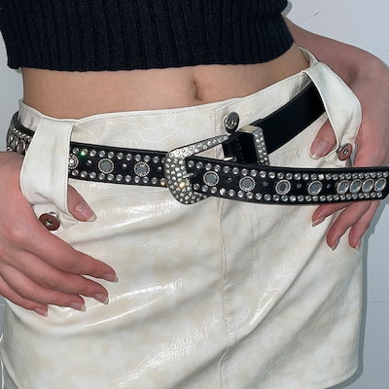 チェーン スタッズ 太ベルト アクセサリー ウエストマーク カジュアル ロック パンク 韓国ストリート 韓国っぽ