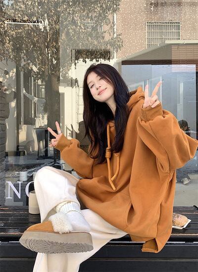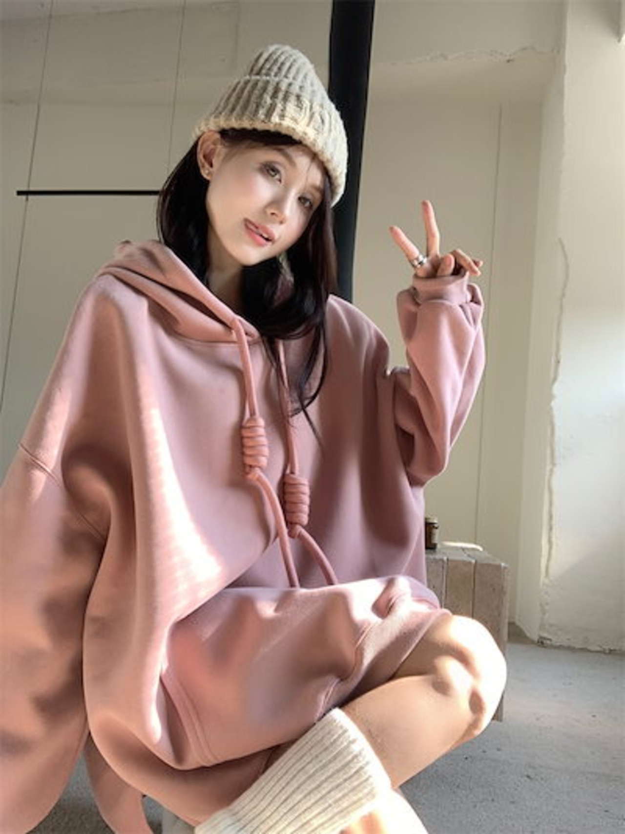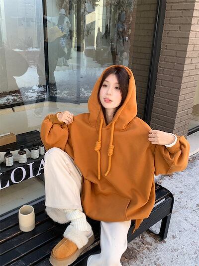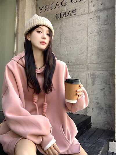 2024秋冬 選べる2タイプ 厚手 裹起毛 パーカー フード付き羽織りスタイルアップ女っぽ きれいめ 大人っぽ 上品 サイズゆったりカジュアルストリートシルエットスリーブ通学学生ファッション系春
