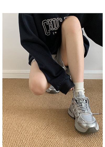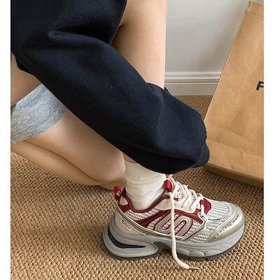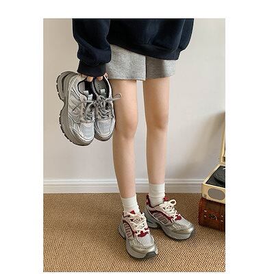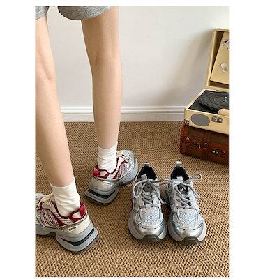 2024 秋冬 可愛い ゆったり ボリュームソール スニーカー 足首ほっそり 厚底 シューズ 脚長効果 美脚見え 学生 通学 シンプル カジュアル 涼しげ スタイルアップ kawaii 靴 白