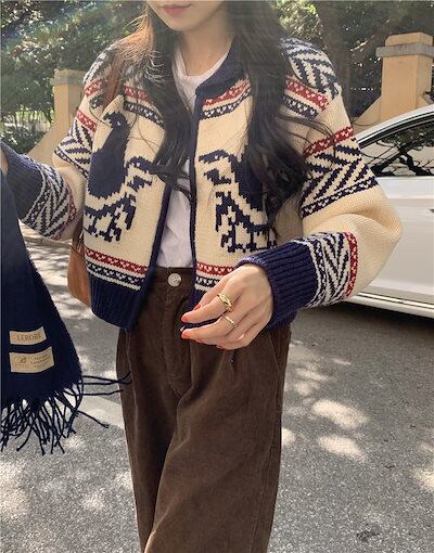 2024 秋 韓国 かわいい レディース ニットカーディガン アウター ブルゾン お出かけ アウター長袖セクシートップスサイド冬カジュアルファッション系お出かけフル丈