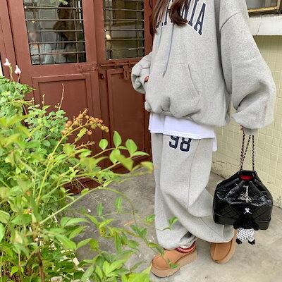 2024 秋冬 2点セット トップス 裹起毛 防寒あったか お出かけ 暖かい 羽織り かわいいショート丈 セットアップ ルーズ ボトムス ストレート系冬 ゆったり サイズワイドシルエット レディース