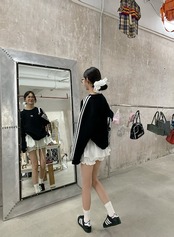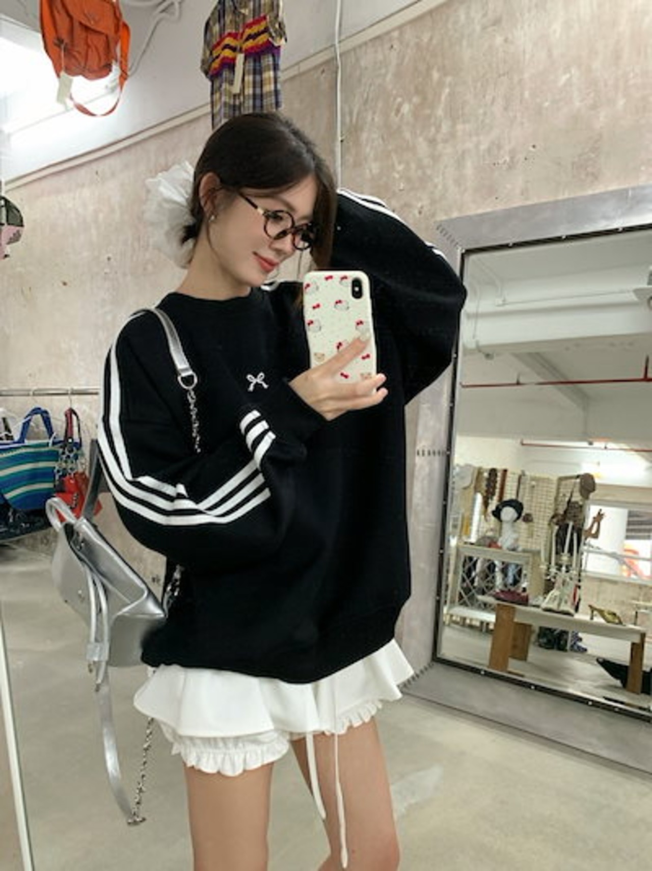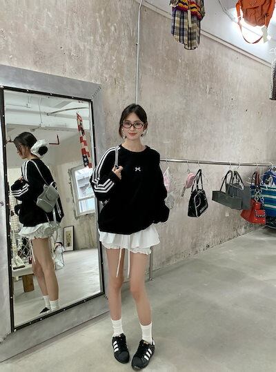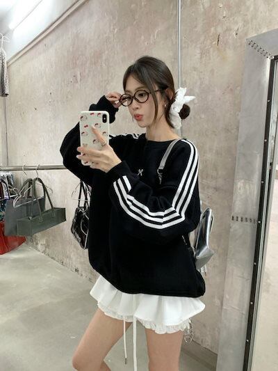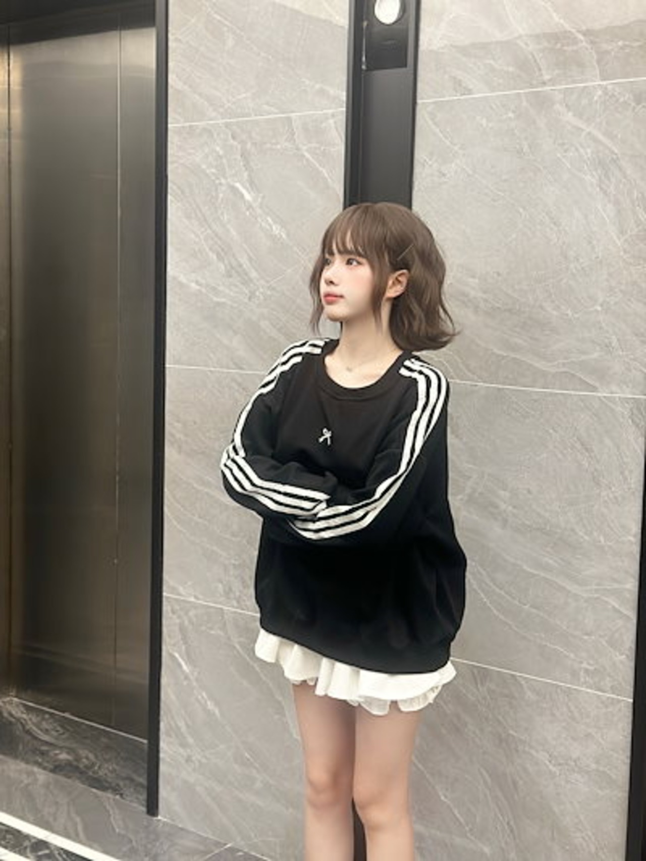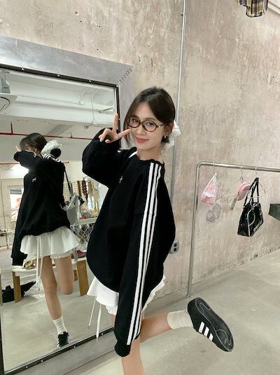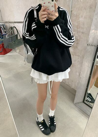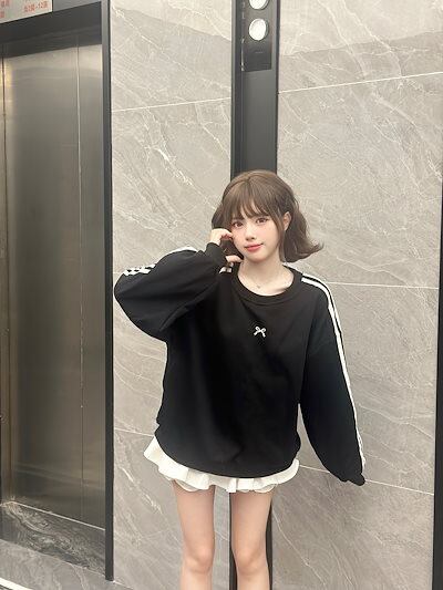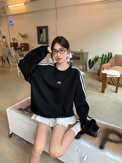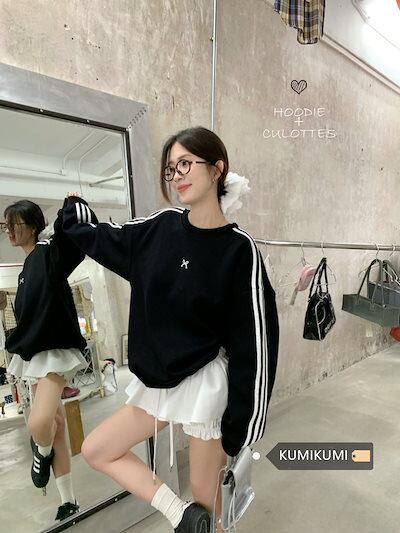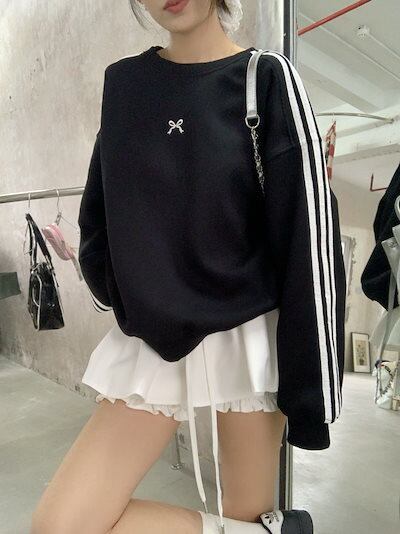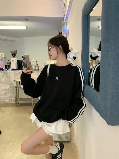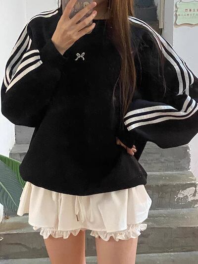 2024秋冬トップス ラウンドネック 長袖 ゆったり 秋コーデ 黑 おしゃれ かわいい ラブリー キュート 韓国ファッション オフ レディース お出かけ 2点