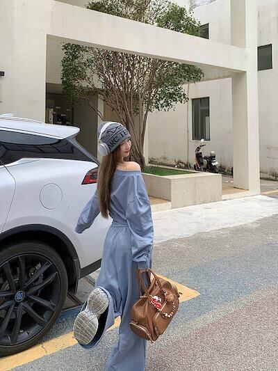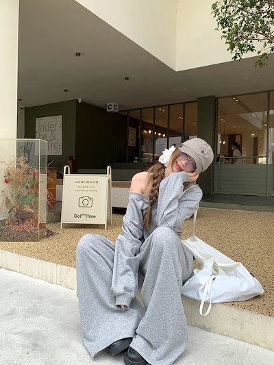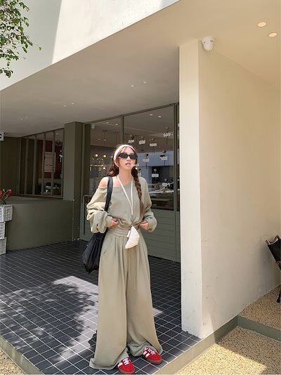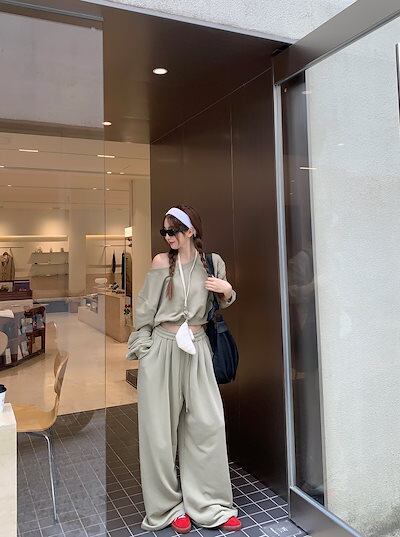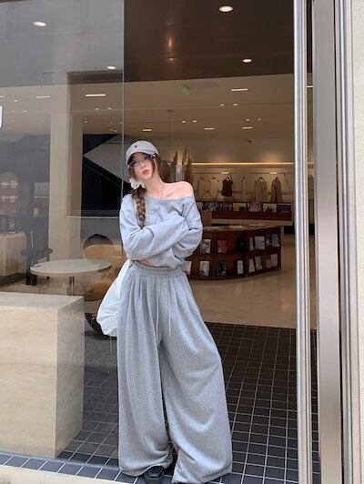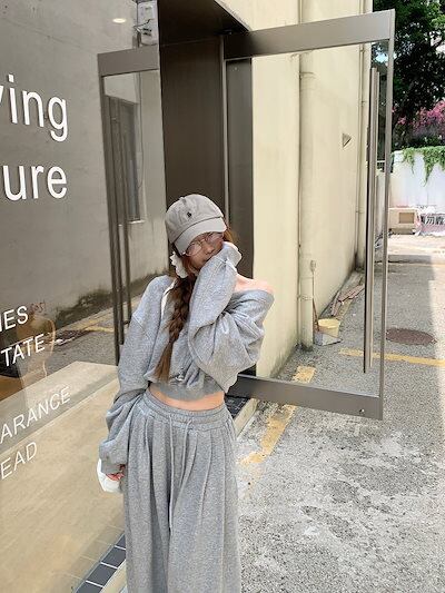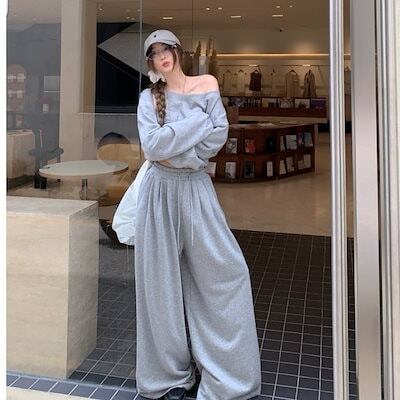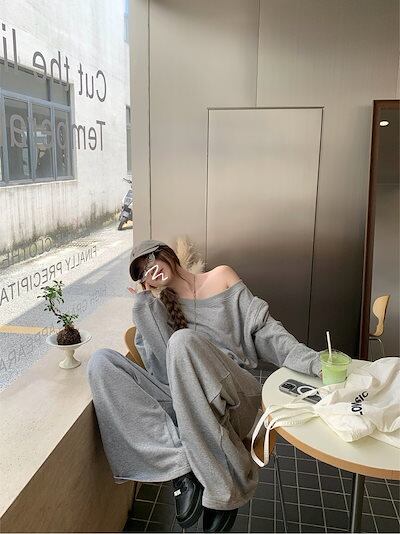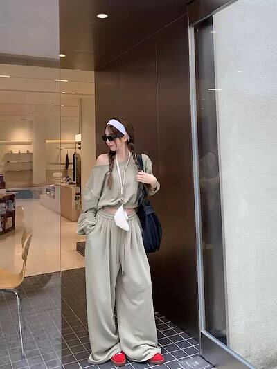 2024 秋冬 トップス 長袖トレーナーかわいいラウンドネックTシャツ肌見せレディース ストレート 韓国風ルーズゆったりカジュアル おしゃれサイズ シルエットファッション系コーデ衣装丈上下セットアップ