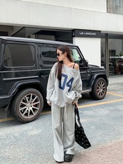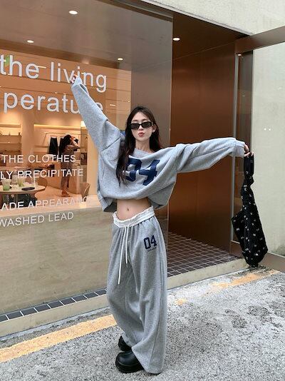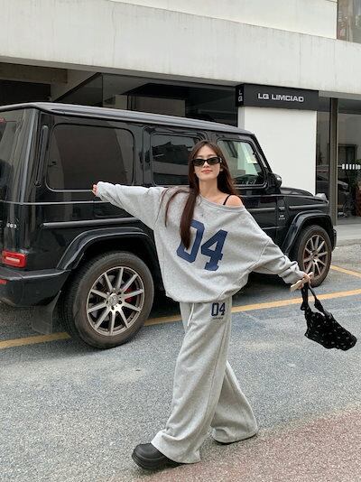 2024 秋冬 トップス 長袖トレーナーかわいいラウンドネックTシャツ肌見せレディース ストレート 韓国風ルーズゆったりカジュアル おしゃれサイズ シルエットファッション系コーデ衣装上下セットアップ