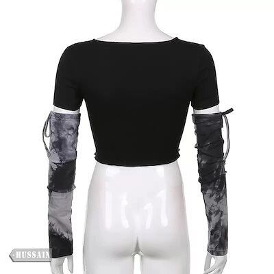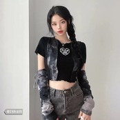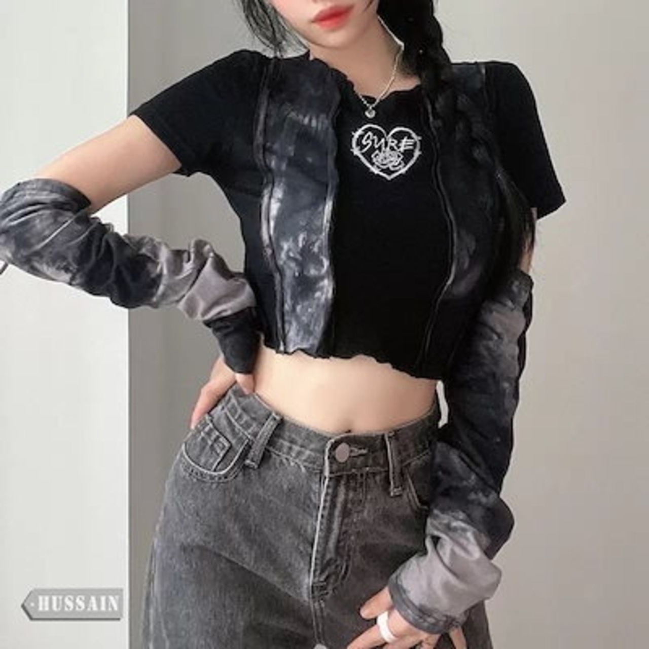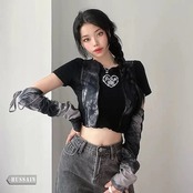 2024秋 長袖 Tシャツ ショート丈 カットソー トップス カジュアル 配色韓国系ストリート丈へそ出しK-POPタイトネックスリーブ 肌見せ T ファッションレディース かわいいハーフ衣装風冬付き