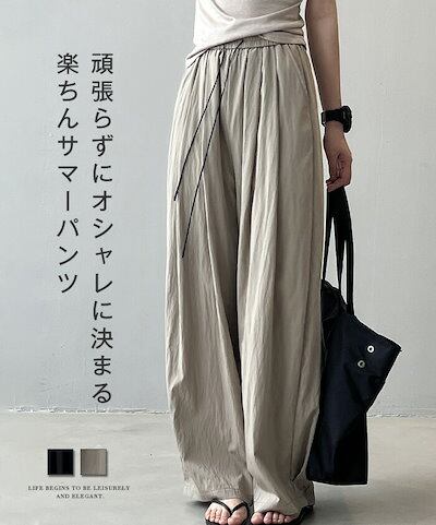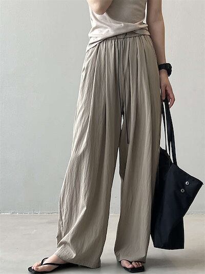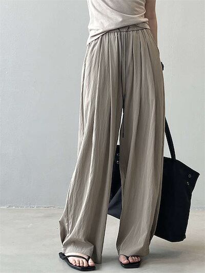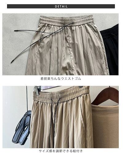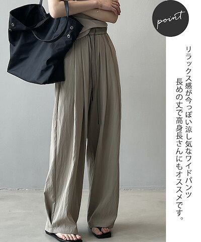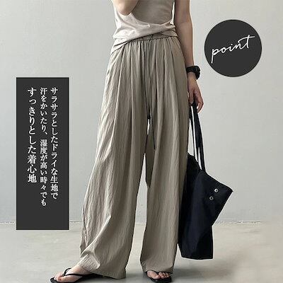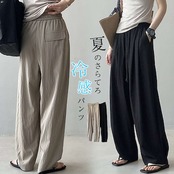 ワイドパンツ レディース イージーパンツ ひんやり 涼しい 冷感 薄手 UVカット ガウチョパンツ ロング ロングパンツ シワ加工 ゆったり さらさら 夏 ワイド ボトムス きれいめ ズボン 長ズボン