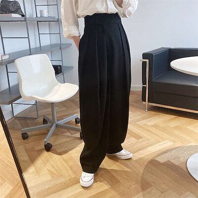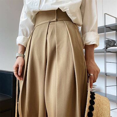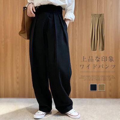 ワイドパンツ レディース タックパンツ ボトムス マキシ丈 秋 冬 春 オールシーズン無地 イージーパンツ ズボン アシンメトリー スラックス ハイウエスト マジックテープ 上品 きれいめ 落ち感 セ