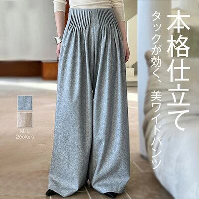 ワイドパンツ タックパンツ パンツ レディース フレアパンツ ガウチョパンツ ハイウエスト 卒業式 入学式 スーツ ボトムス オフィスカジュアル ロング ワイド タック プリーツ きれいめ 長ズボン