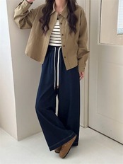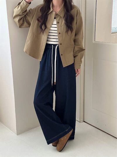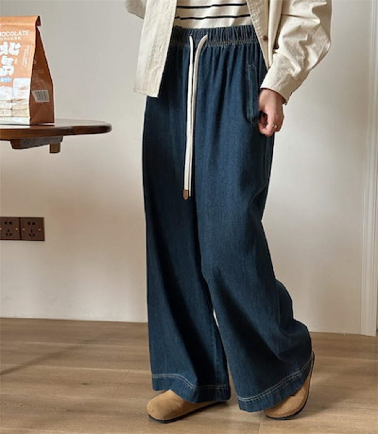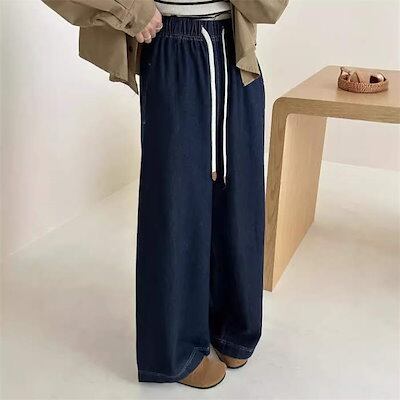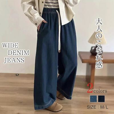 デニム パンツ レディース 秋 冬 オールシーズン ワイドパンツ ロング丈 ウエストゴム 無地 ジーンズ ボトムス ゆったり ストレートパンツ コットン 楽ちん デニムパンツ 体型カバー 大きいサイズ