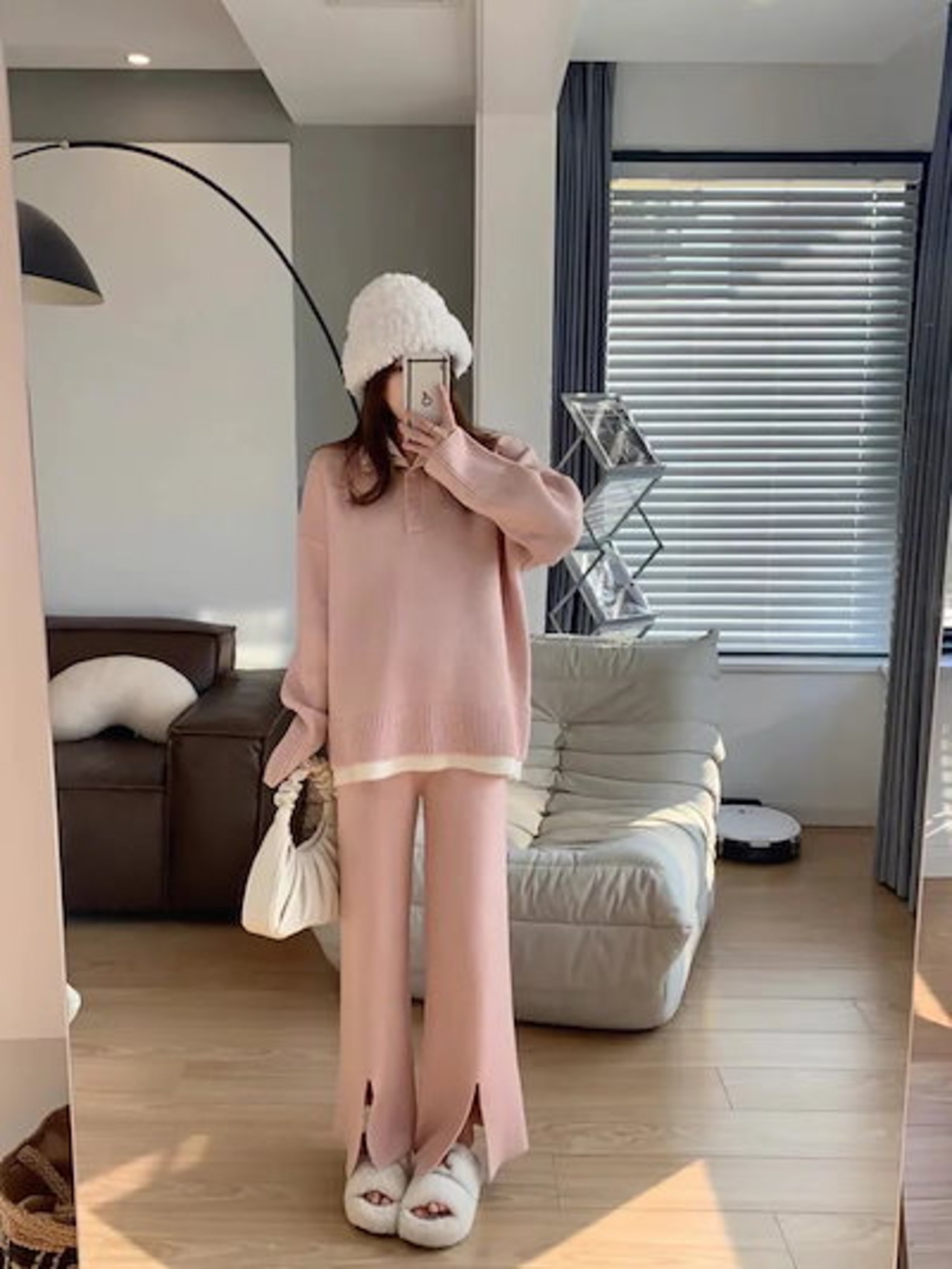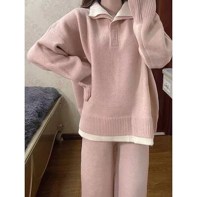 セーター 秋冬 ワイドパンツ ニット 通勤 おしゃれ セットアップ 二点セット 気質 ベーシックニット 長袖セーター 新作 上下レディースセットアップ アウター