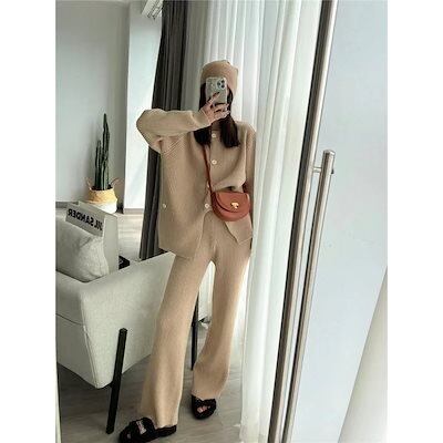 気質 新作 ニット 上下セット レディースセットアップ 秋冬 通勤 おしゃれ シンプル 福袋7 ワイドパンツ セーター アウター セットアップ 二点セット