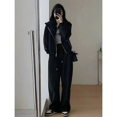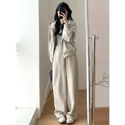 レディース 二点セット ワイドパンツ 着痩せ 秋冬 カジュアル 新作 大きいサイズ 厚手 スウェット セットアップ 運動 裏起毛ファッション7 裏起毛 パーカー