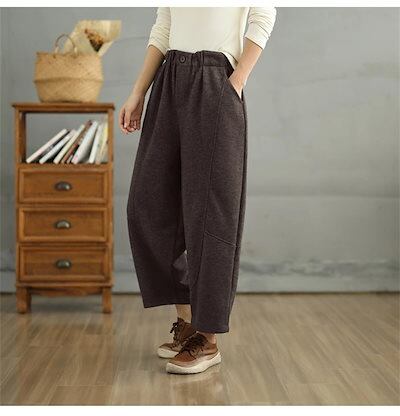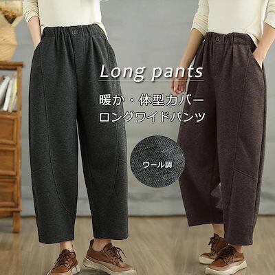 ガウチョパンツ ワイドパンツ レディース ウール調 裏起毛 秋冬 微起毛 体型カバー ボトムス 秋 ロングパンツ キュロット 暖かい 防寒 パンツ ハロンパンツ テーパードパンツ 高見え パンツ ワイ