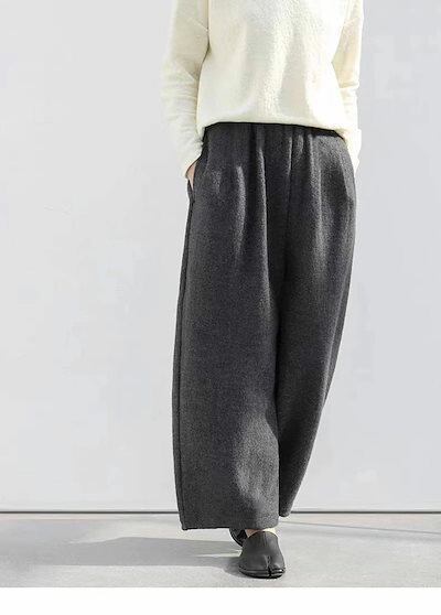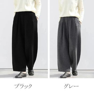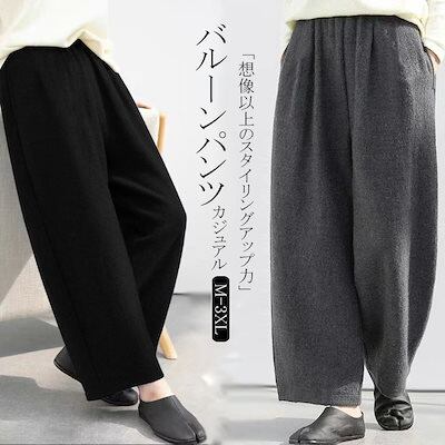 バルーンパンツ レディース 秋冬 ウール調 パンツ サーカスパンツ コクーン ワイドパンツ 体型カバー ガウチョ ロングパンツ ウエストゴム サルエルパンツ 大きいサイズ ボトムス ワイド ハロンパン