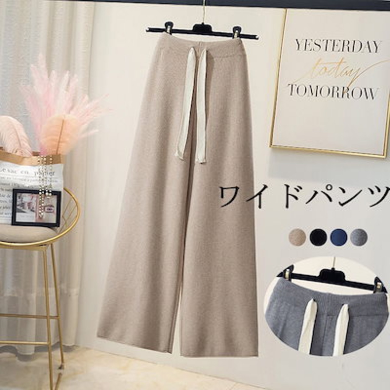 ワイドパンツ 冬 パンツ レディース ガウチョパンツ 秋冬 パンツ ワイド ストレートパンツ ハイウエスト カジュアル 無地 あったか ガウチョ ボトムス ウエストゴム 大きいサイズ ドローストリング